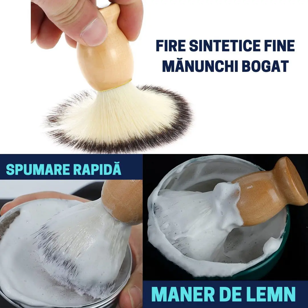 • Pamatuf din lemn natural pentru o un barbierit elegant