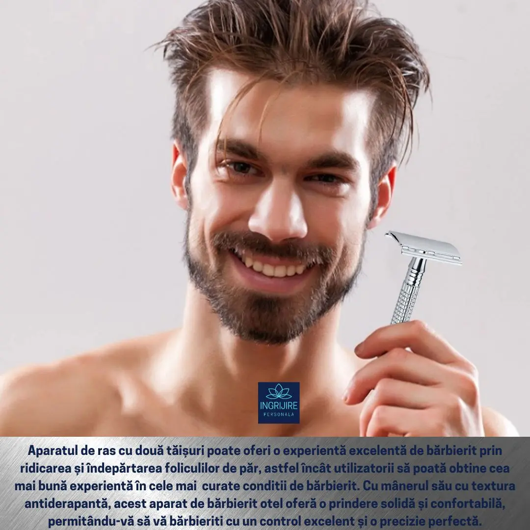 Fiecare aparat de ras de unica folosinta fabricat ajunge la groapa de gunoi, dar aparatul de ras clasic dureaza o viata, fiind realizat din otel inoxidabil si aliaj de zinc de inalta calitate. Nu vei mai cheltui niciodata alti bani pe aparatul de ras.