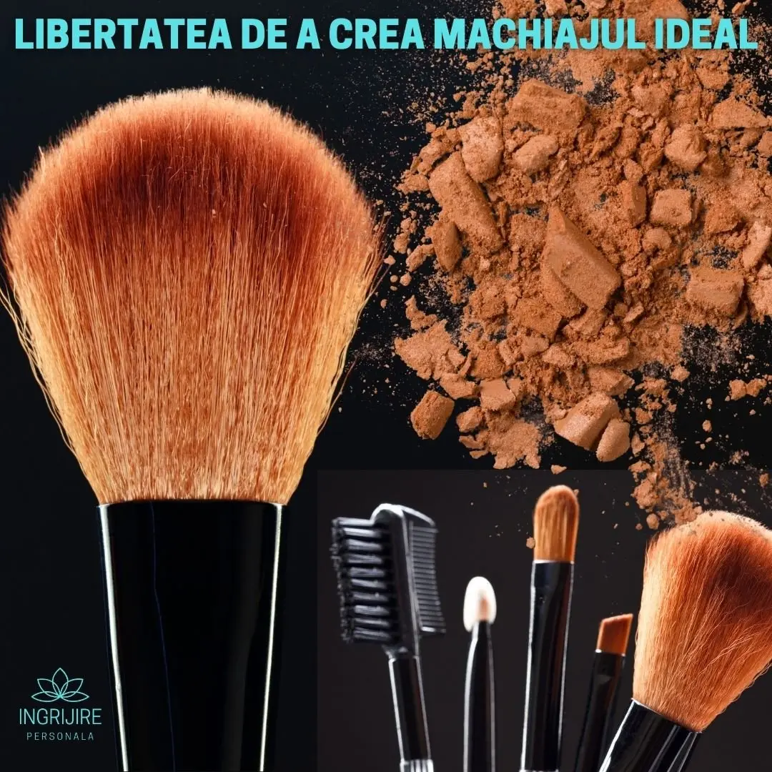 - pensule pentru: blush, pudra, fond de ten si fard pentru bronz, amestecare culori, pentru aplicarea fardurilor de pleoape, a corectorului, a creionului pentru conturul ochilor, pensula cu dimensiuni mai mici pentru aplicarea rujului, perie pentru pieptanarea sprancenelor .