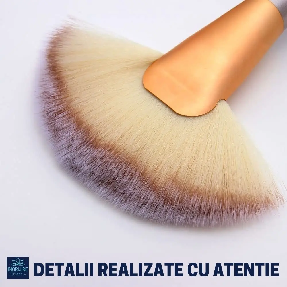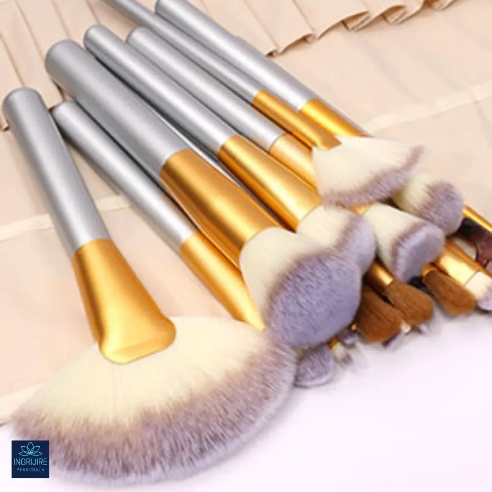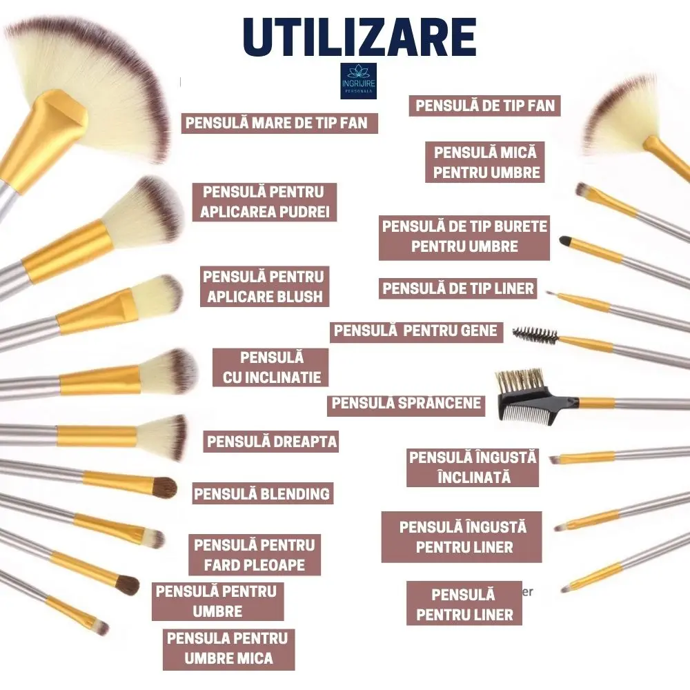 Descoperă secretul unui machiaj impecabil! Acest set complet de 18 pensule îți oferă instrumentele perfecte pentru aplicarea fondului de ten, fardului, pudrei și mult mai mult, indiferent dacă ești începătoare sau makeup artist.