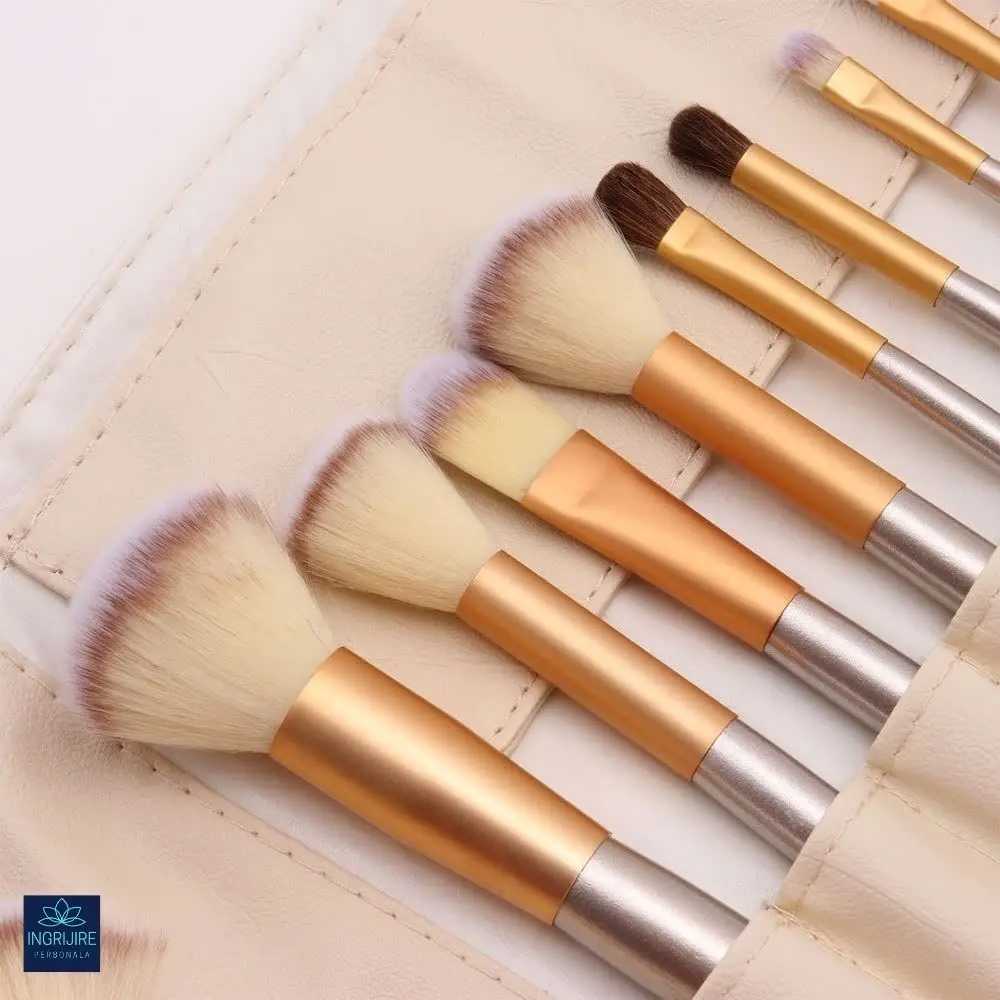 Set 18 Pensule Machiaj Profesional – cu Husă din Piele Ecologică