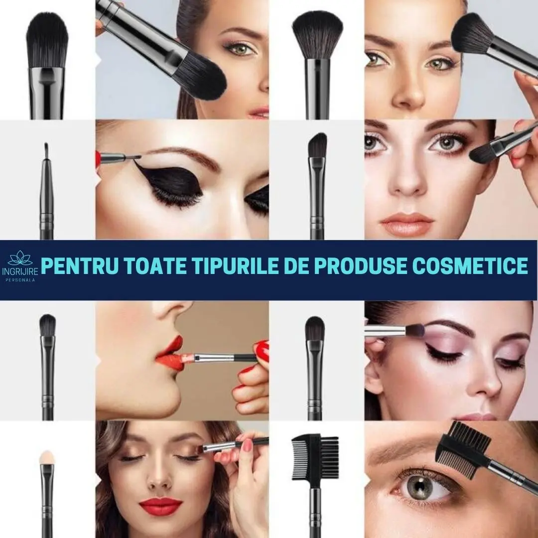 Include 24 de pensule profesionale, potrivite pentru față, ochi, buze și detalii fine