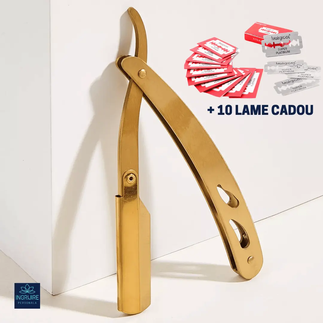 Brici cu lama interschimbabila + 10 lame cadou, otel inoxidabil, Royal Gold