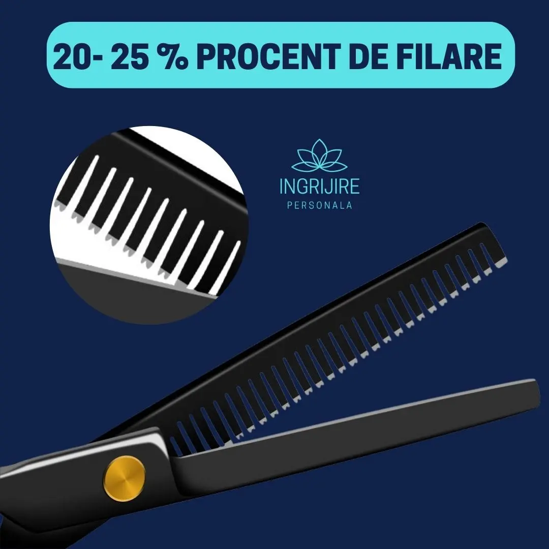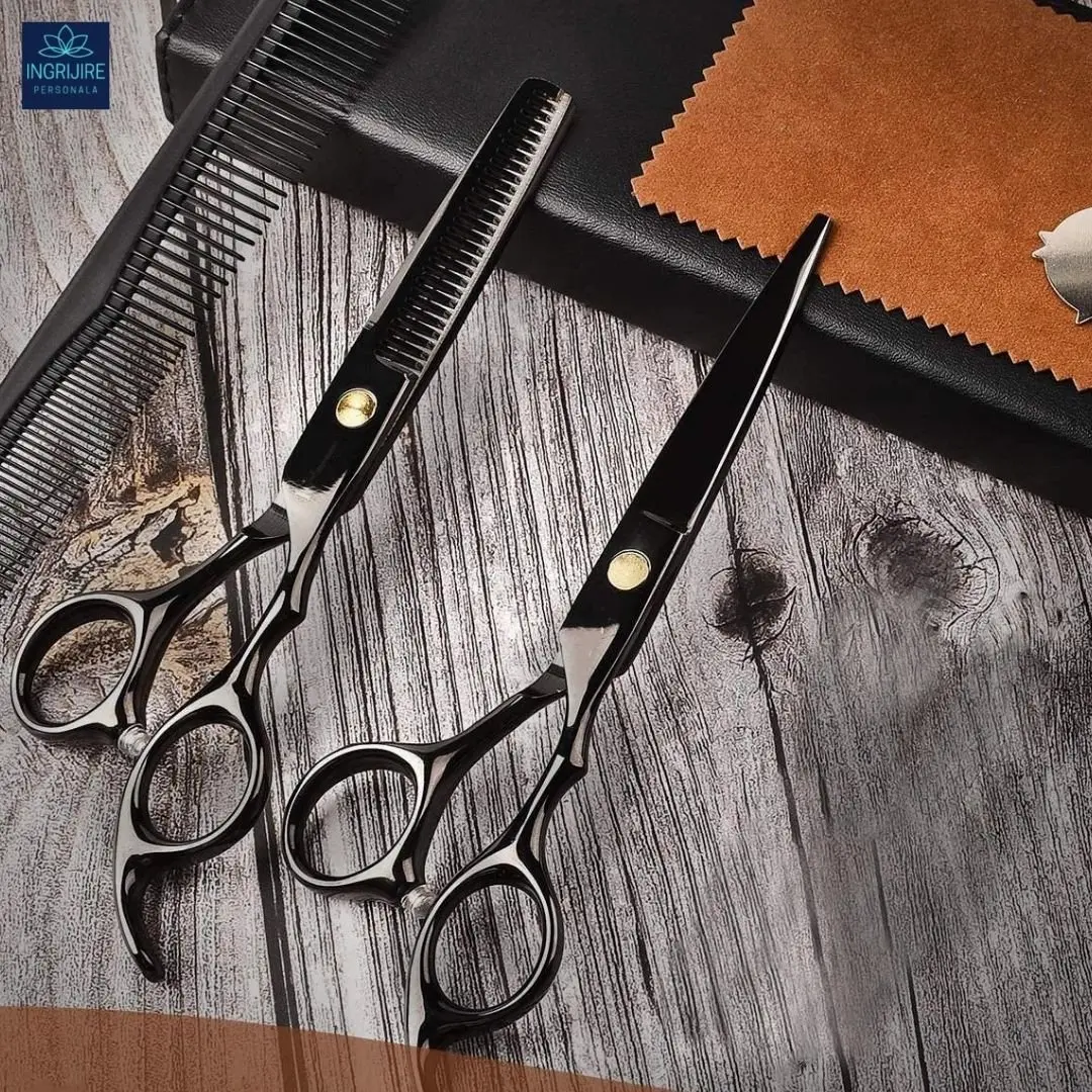 Set profesional 2 foarfece tuns & filat – Oțel Japonez 6″ Matte Black