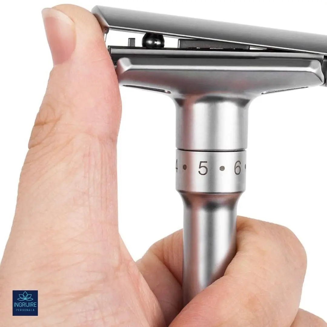 Construit din metal durabil, cu un design ergonomic, aparatul de ras cu reglaj ofera acuratete in realizarea unui barbierit profesional, in confortul propriei locuinte, protejand mediul inconjurator, prin durabilitatea lui. Aparatul de ras clasic cu reglaj al unghiului lamei oferă posibilitatea ajustării unghiului la care lama este expusă pentru a se potrivi preferințelor bărbieritului. Această caracteristică adaugă o flexibilitate suplimentară și îmbunătățeste confortul și rezultatele bărbieritului.