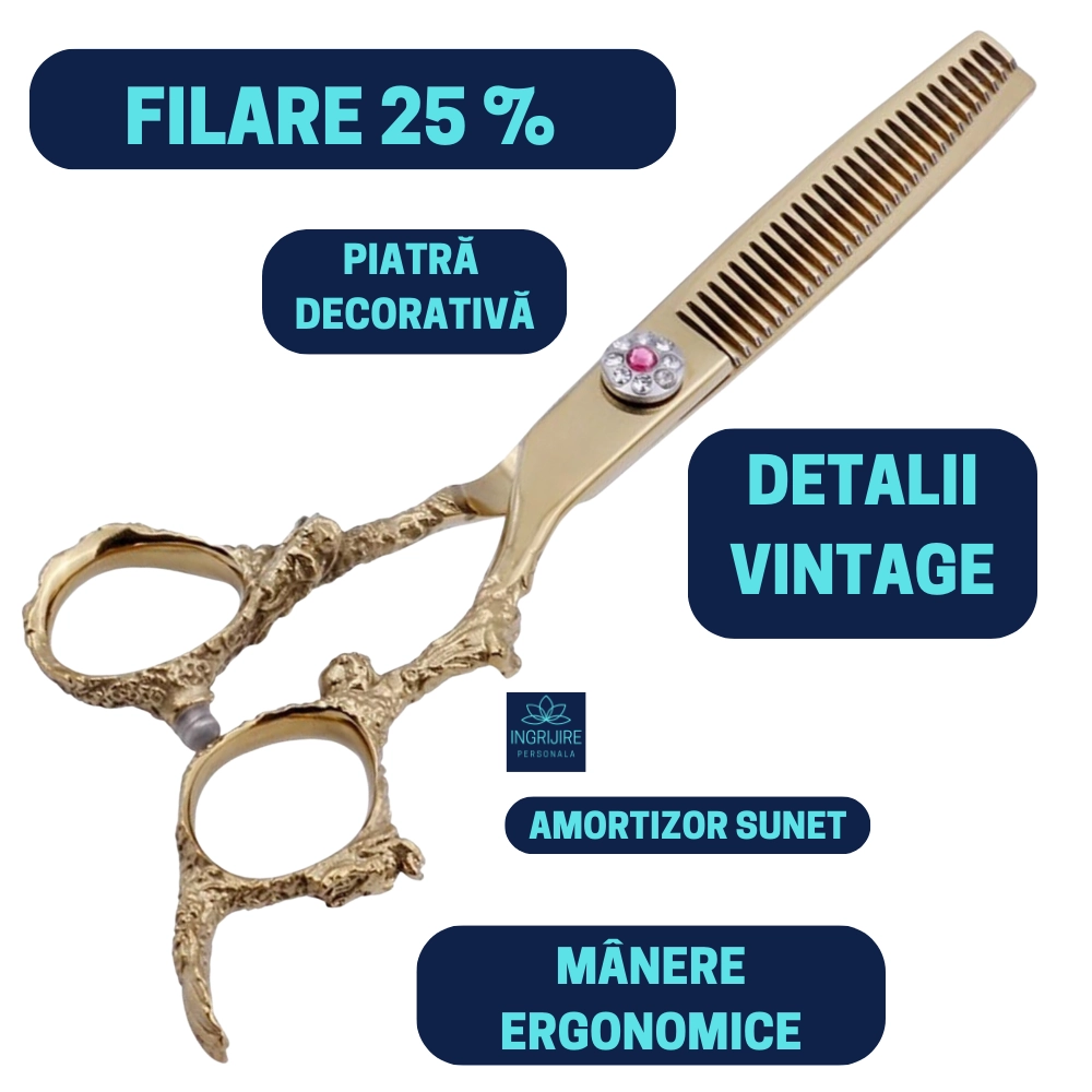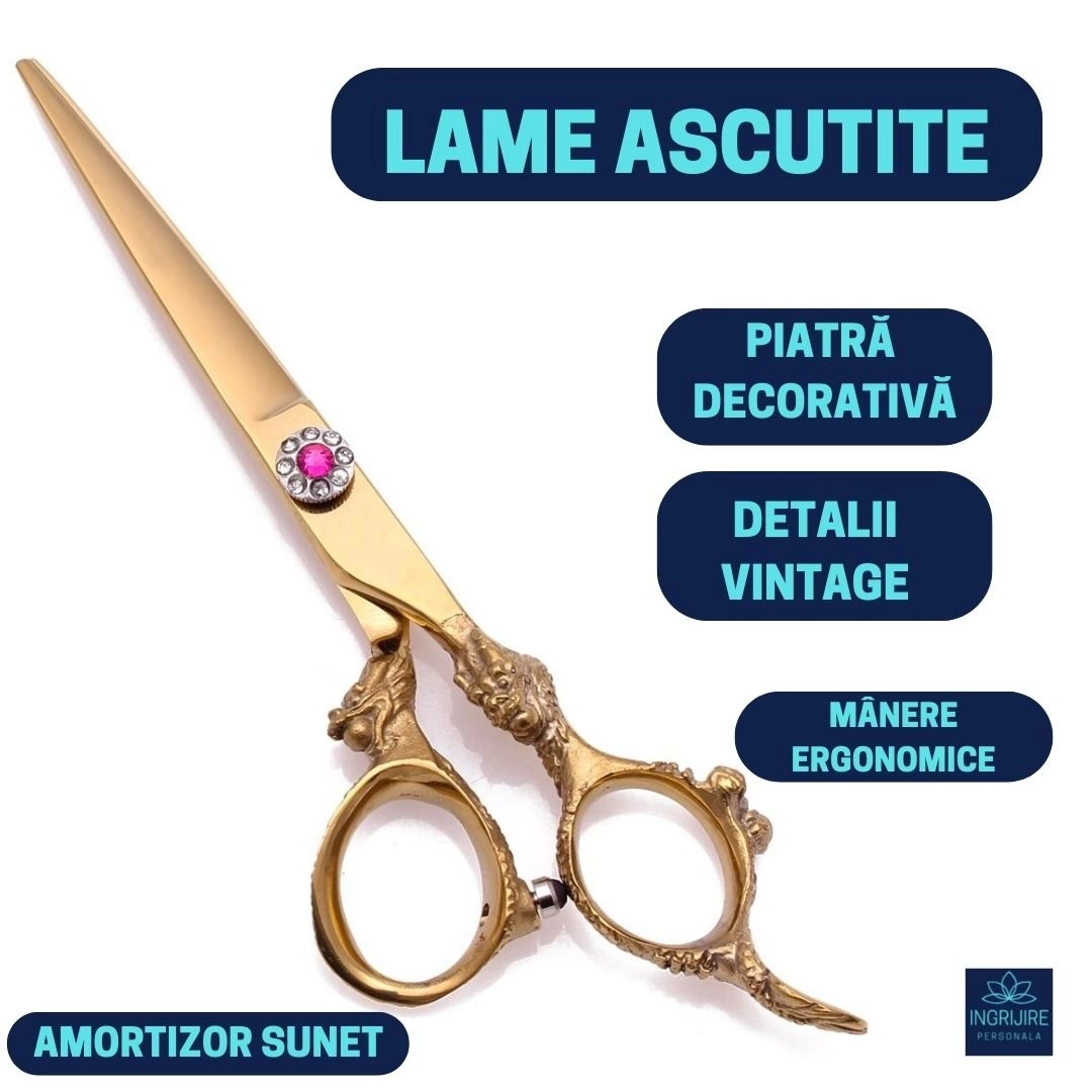 Set de 2 Foarfece de Tuns 6'', Oțel Japonez, Royal Gold