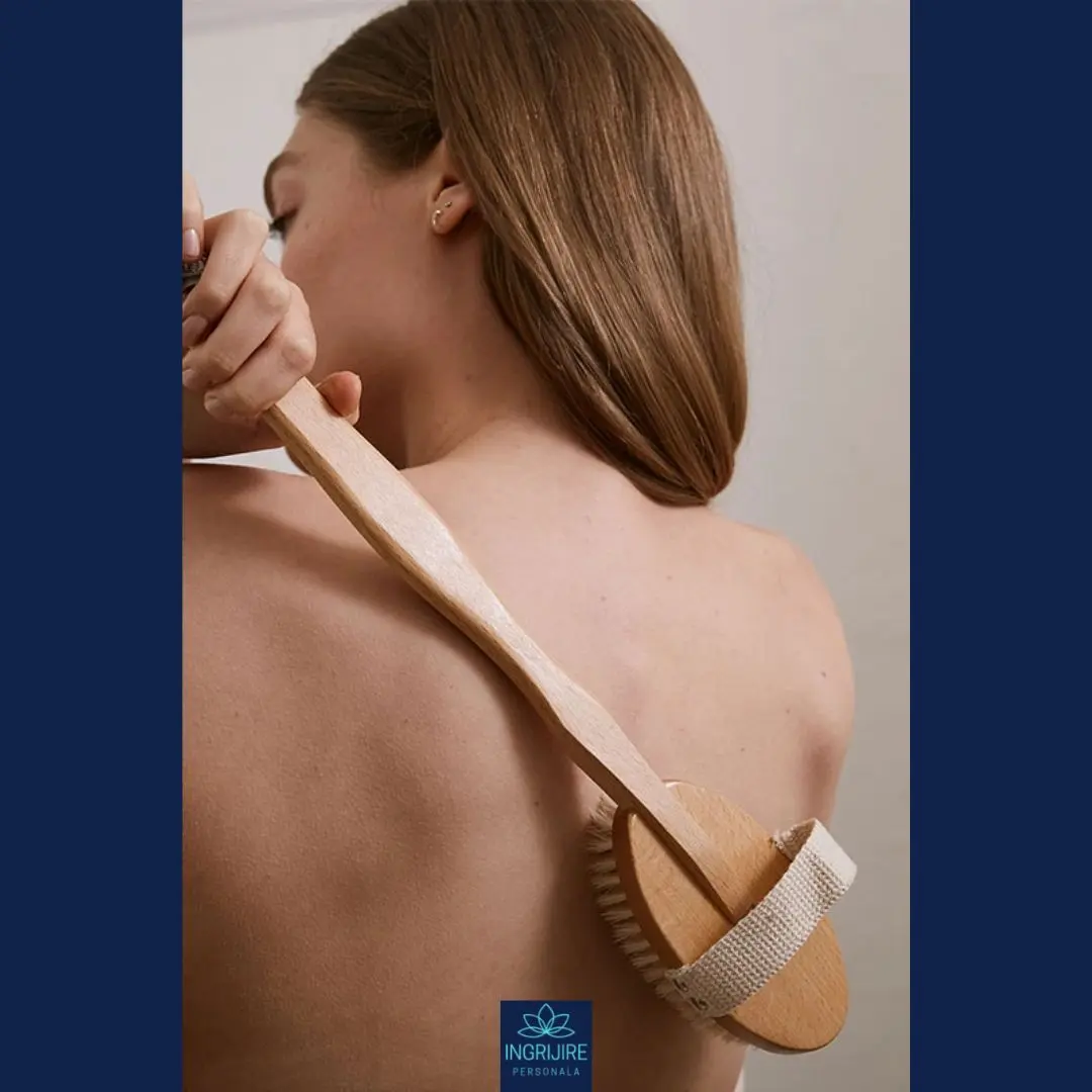 Pentru exfoliere uscată, folosește peria înainte de duș, prin mișcări circulare ușoare