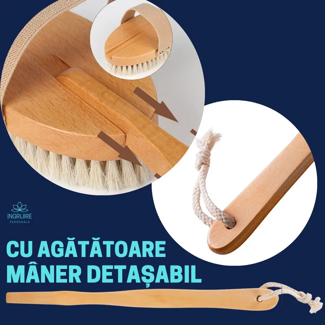 Perie de Baie din Lemn cu Mâner Detașabil – Peri Artificiali