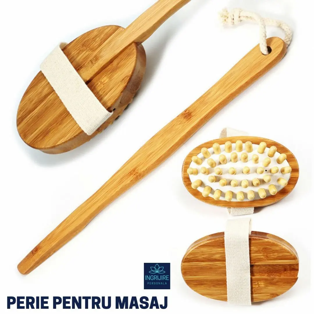 Include: perie cu mâner lung pentru spate, perie de mână pentru masaj și perie mică pentru zone sensibile
