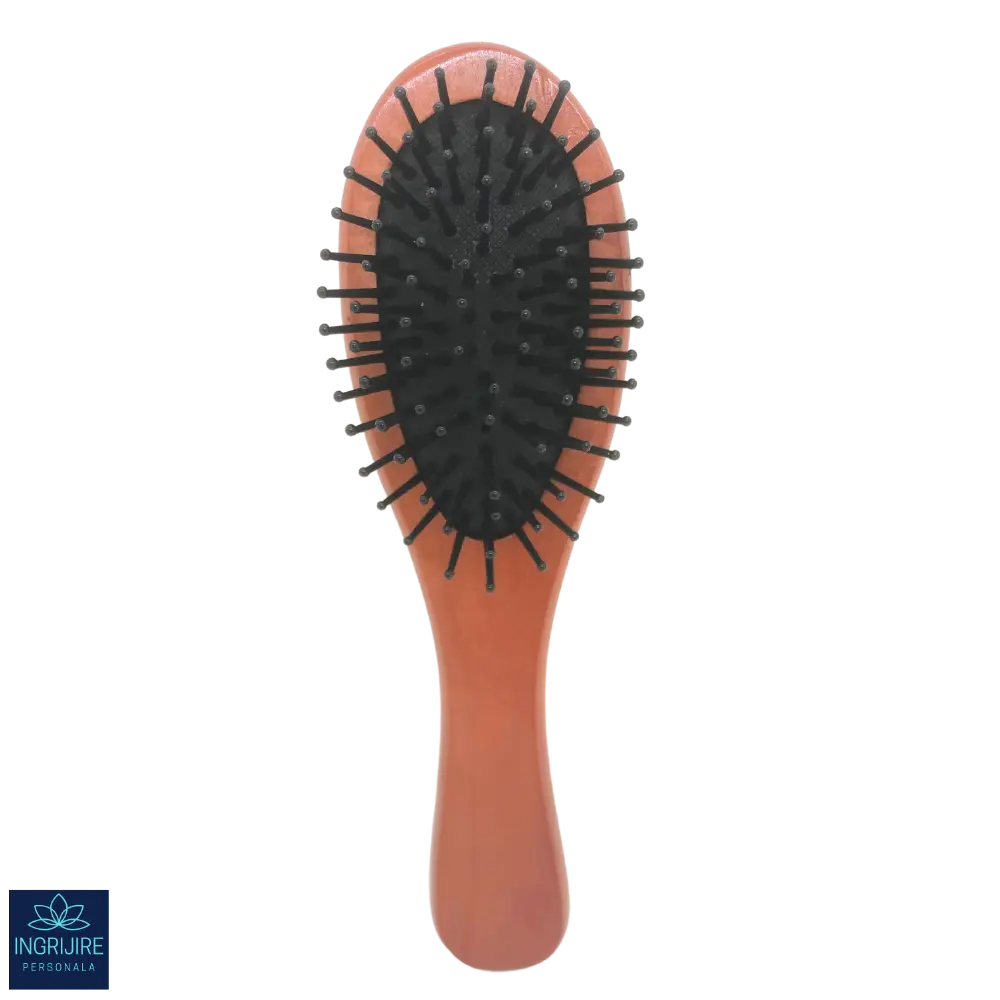 Descoperă echilibrul perfect între design natural și eficiență. Această perie de păr cu mâner din lemn oferă o experiență plăcută de pieptănare, reducând disconfortul și electrizarea părului.