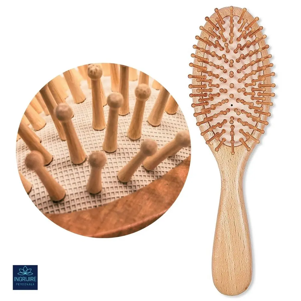 Perie de Păr cu Peri și Mâner din Lemn de Bambus