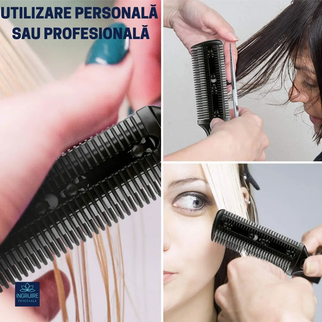 Obține tunsori precise și stilizate cu acest pieptene profesional, ideal pentru filarea și subțierea părului.