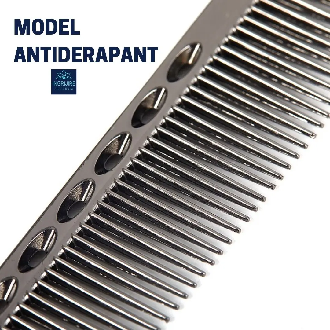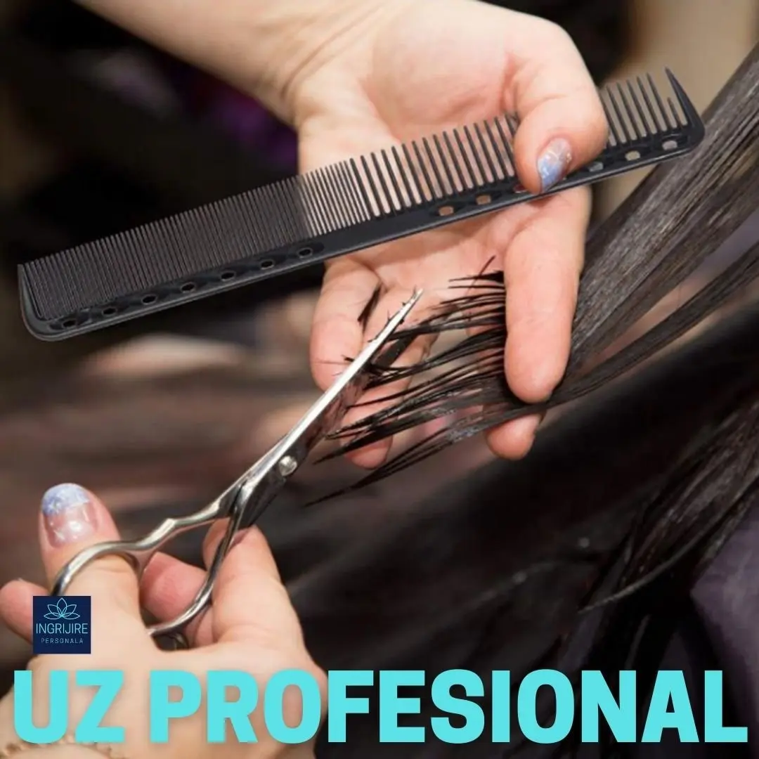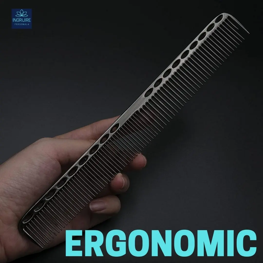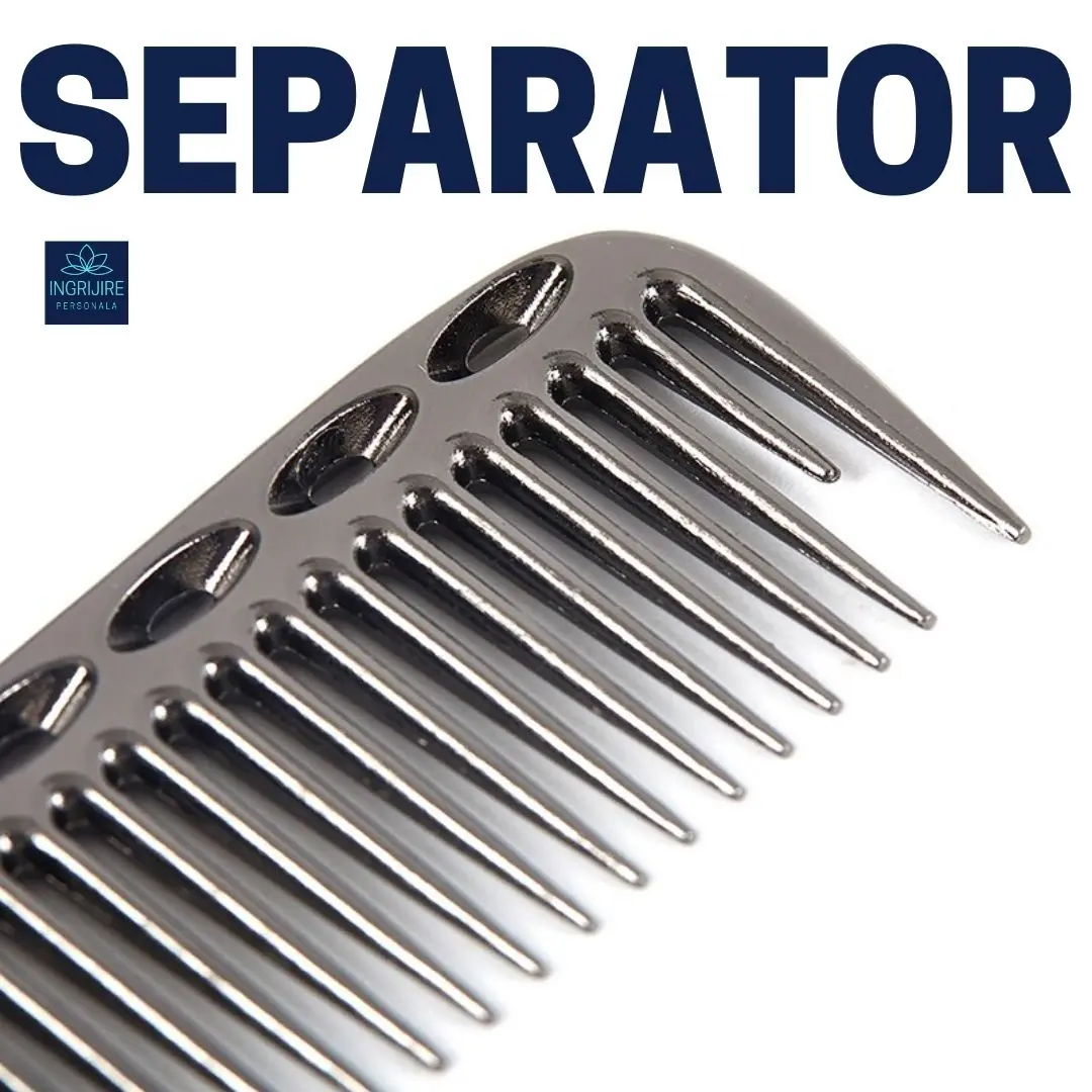 Pieptene professional folosit in ingrijirea profesionala a parului in saloane dar si pentru uz personal, ofera doua niveluri de pieptanare, o parte are dinti desi o parte rari.