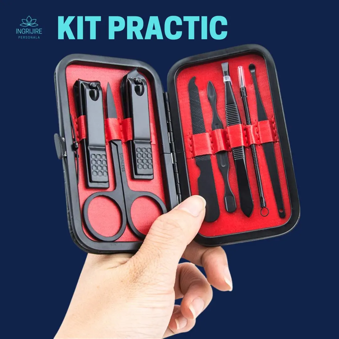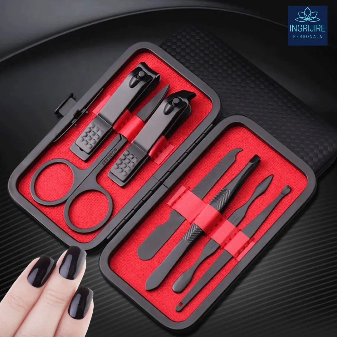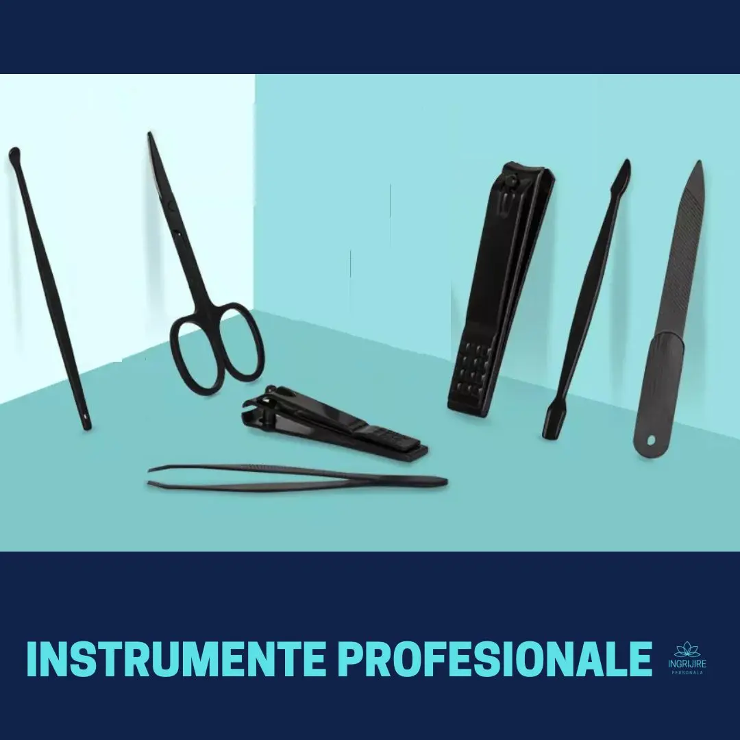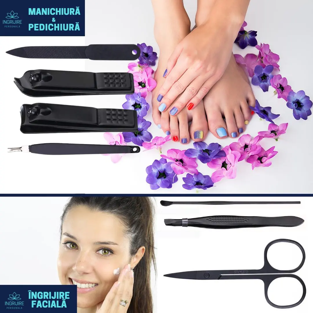 Trusă Manichiură Profesională – 7 Piese, Oțel Negru Mat