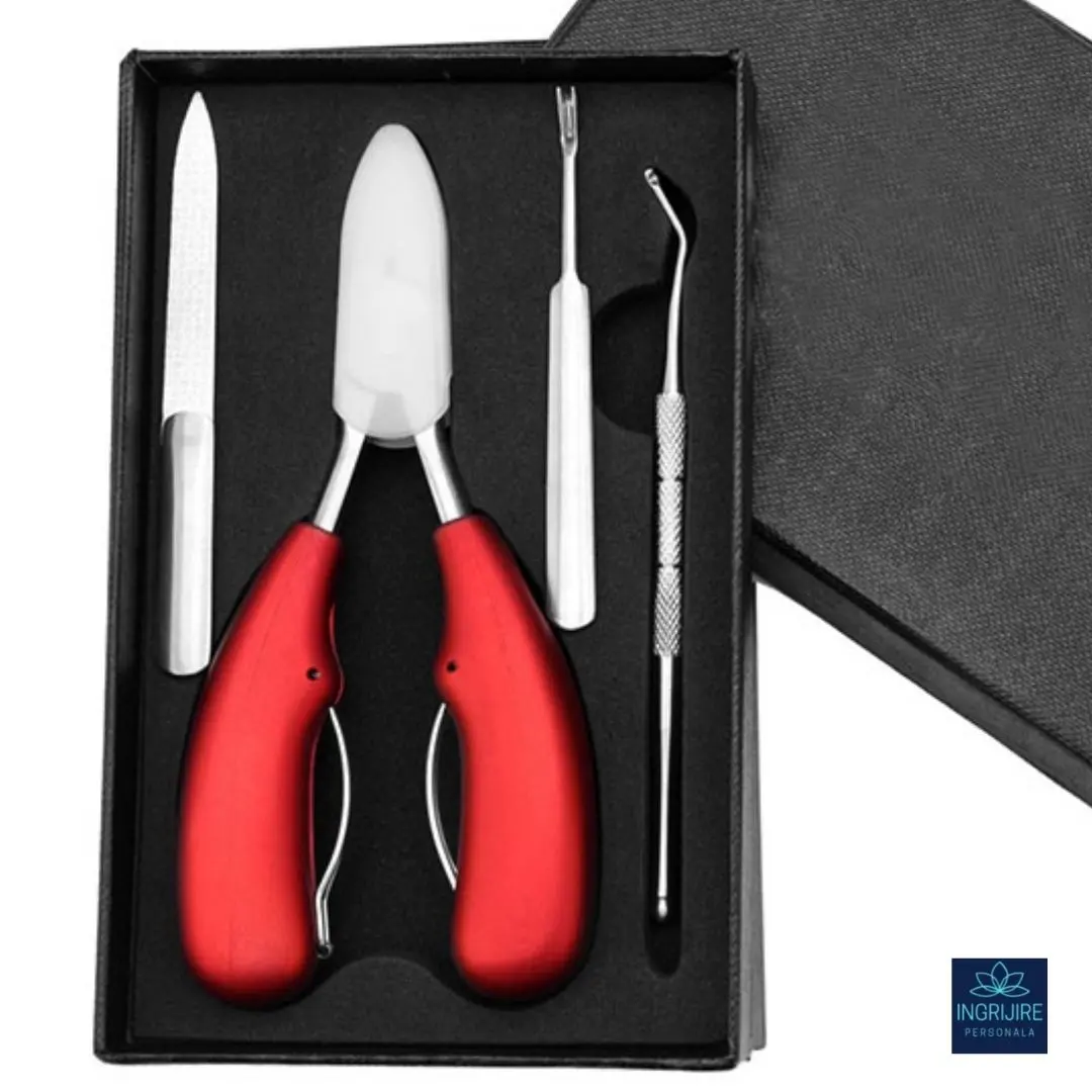 Set complet: Include clește pentru pedichiură, pilă și alte instrumente esențiale pentru îngrijirea unghiilor dure.