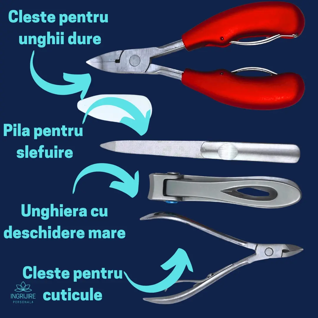 • Instrumente concepute pentru îndepărtarea eficientă a unghiilor dure